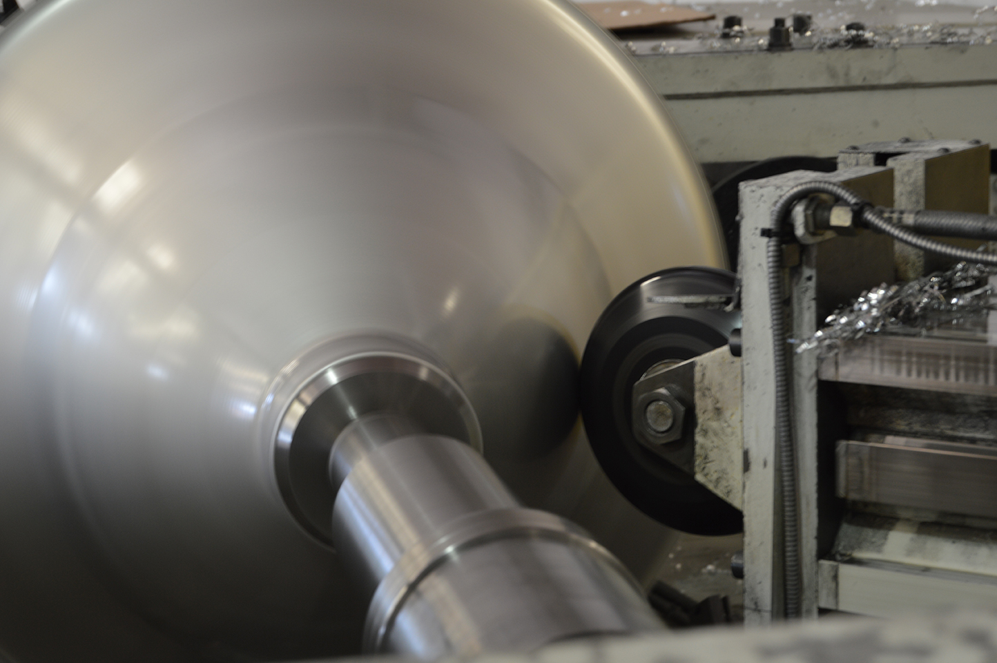 Cuatro tornos de entallado metálico o repulsado de máximo diámetro de disco 600 mm y máximo espesor 4 mm de acero al carbono, 6 en aluminio y 2.5 mm en acero inoxidable, para las piezas más pequeñas, se fabrican a gran velocidad y alta calidad.